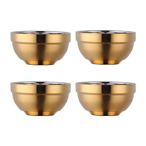 Do Buy Lot de 4 bols à céréales en acier inoxydable doré 500 ml - Bols à riz - Grand bol à pâtes - Bols à dessert - Largeur : 13 cm - En métal - Double couche - Anti-chaud