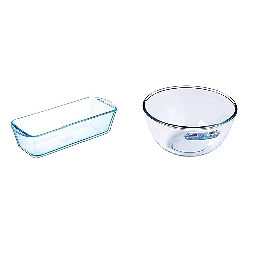 Pyrex - Bake & Enjoy - Moule à Cake en Verre Ecru 28 x 12 x 8 cm & Bol en verre 3 L, Blanc