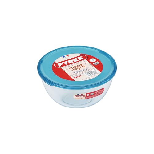 Pyrex Bol 2 l avec couvercle en verre borosilicate résistant aux taches, Transparent, Vert