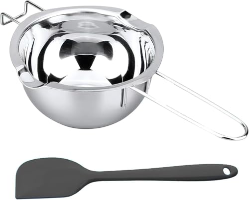 ALLAVA Casserole de 600 ml, bol de fusion de bain-marie, pot de fonte, pot de cire de bougie en acier inoxydable, grattoir en plastique bonus, pour bougies, sucre, beurre, fromage, caramel, chocolat