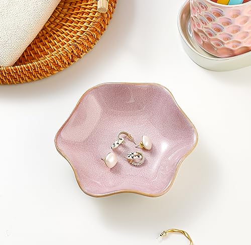 Binoster Plat à bijoux en céramique, plateau à bijoux, bol à clés, décoration de chambre, salle de bain, décoration d'intérieur, cadeaux pour femme, maman, sœur, collègue, amie, mariée (14 cm, rose)