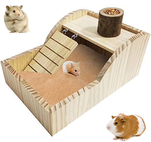 PINVNBY Boîte de Bain en Bois pour Hamster, Salle de Douche, bac à Sable, avec échelle d'escalade, Bol de Salle de Bain pour Souris syriennes, gerbilles et Autres Petits Animaux