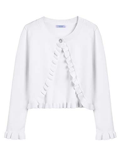 Proumhang Cardigan Bolero Shrug pour Filles Chandails à Manches Longues en Coton Tricoté Châle à Un Bouton Veste Sweatshirt Manteaux Robe Couvrante pour Enfants 3-10 Ans Blanc 140