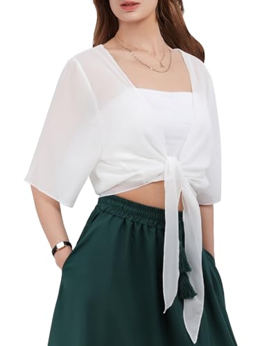 Kefiyis Boléro Femme Été Léger Cardigan Décontracté Court Shrug pour Mariage Cérémonie Fête, Blanc, M