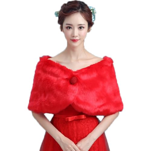 Étole de mariée en fourrure synthétique pour femme - Rouge - Écharpe de mariée - Col en fourrure - Écharpe d'hiver - Écharpe de soirée - Boléro - Cape pour robe de mariée Cheongsam - Banquet