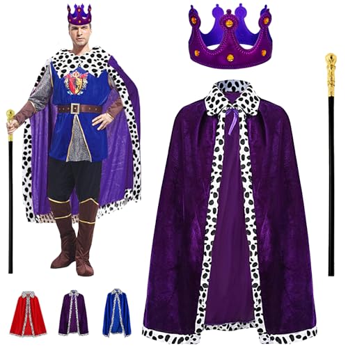 YOUYIKE 3 Costumes de Roi pour Adulte, Manteau Royal, Couronne Roi Reine, Sceptre, Déguisement Prince, Costume Médiéval Adulte, Pour cosplay, Soirée à thème, Halloween, pour De Fête Robe 130cm