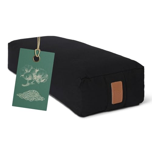 Bodhi Coussin bolster de yoga BASIC env. 65 x 22 cm, coton robuste, housse amovible, lavable à 30°C, passant pour le transport, remplissage et couleur au choix (noir, cosses d'épeautre)
