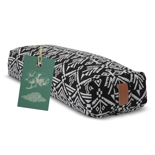 basaho Traversin de Yoga | Coton Bio | Coques de Sarrasin | Housse Amovible et Lavable | Bolster de Yoga (Feuille)
