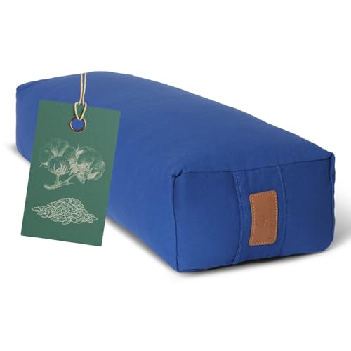 Livasia Coussin Yoga carré Bloc - 17x34x12cm - Coussin de méditation kapok, Coussin de Soutien Bolster rectangulaire, Accessoires Yoga Pilates Coussin cale-Nuque, Fait Main (Bleu)