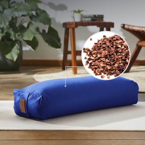 Bodhi Coussin Bolster de Yoga Basic env. 65 x 23 cm, Coton Robuste, Housse Amovible, Lavable à 30°C, Passant pour Le Transport, Remplissage et Couleur au Choix (Bleu, cosses d'épeautre)