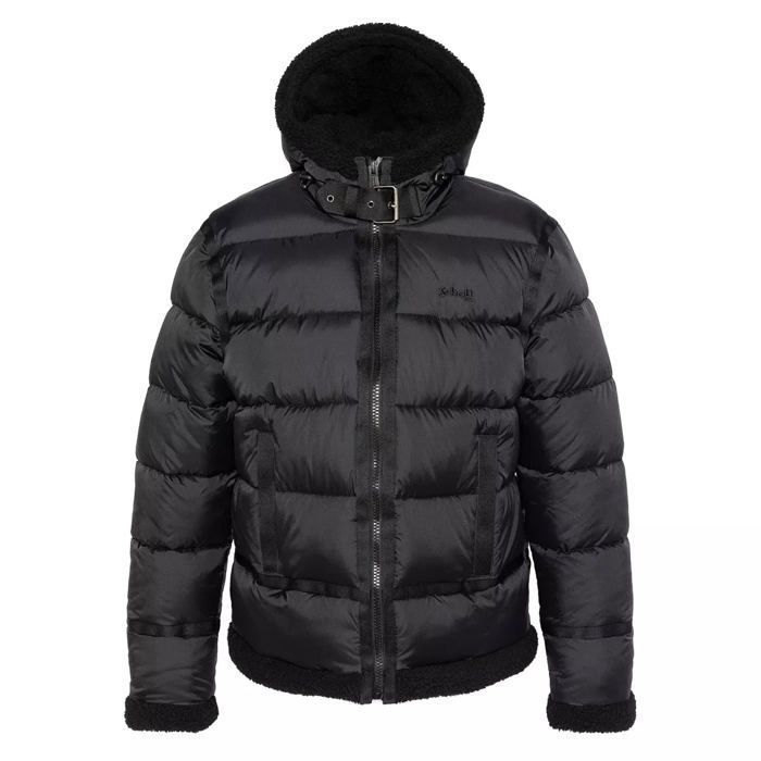 Doudoune à capuche - SCHOTT - IDAK2 BOMBARDIER - Noir - Capuche doublée sherpa - Poches zippées micro polaire