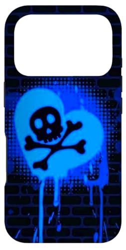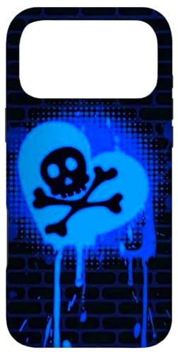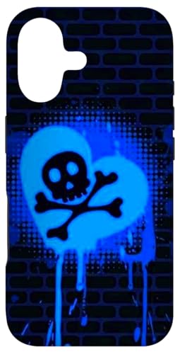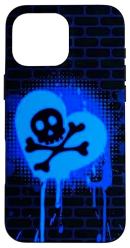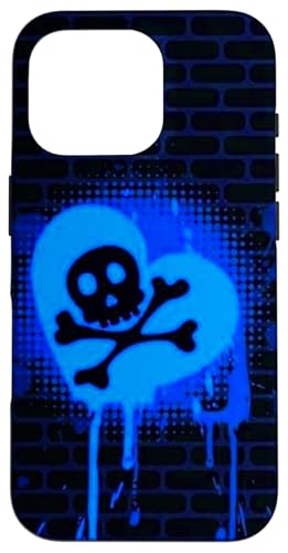 Bombe de Peinture Graffiti Bleu crâne cœur Emo Punk esthétique Coque pour iPhone 16 Pro