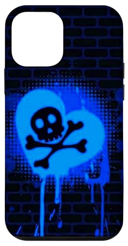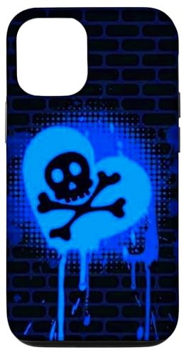 Bombe de Peinture Graffiti Bleu crâne cœur Emo Punk esthétique Coque pour iPhone 13 Pro Max