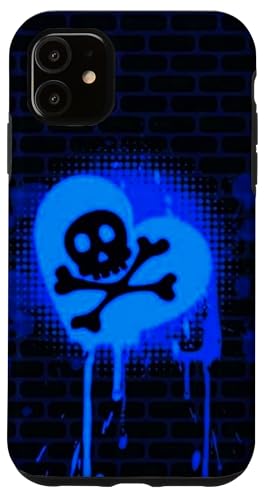 Bombe de Peinture Graffiti Bleu crâne cœur Emo Punk esthétique Coque pour iPhone 11