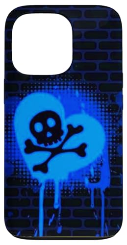 Bombe de Peinture Graffiti Bleu crâne cœur Emo Punk esthétique Coque pour iPhone 13 Pro