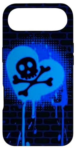 Bombe de Peinture Graffiti Bleu crâne cœur Emo Punk esthétique Coque pour iPhone 17 Pro