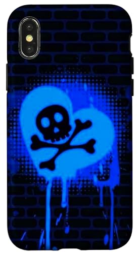 Bombe de Peinture Graffiti Bleu crâne cœur Emo Punk esthétique Coque pour iPhone X/XS