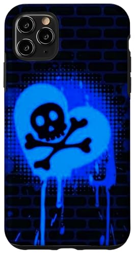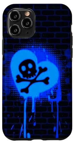 Bombe de Peinture Graffiti Bleu crâne cœur Emo Punk esthétique Coque pour iPhone 11 Pro