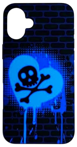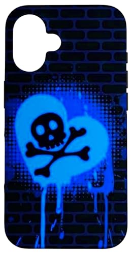 Bombe de Peinture Graffiti Bleu crâne cœur Emo Punk esthétique Coque pour iPhone 16
