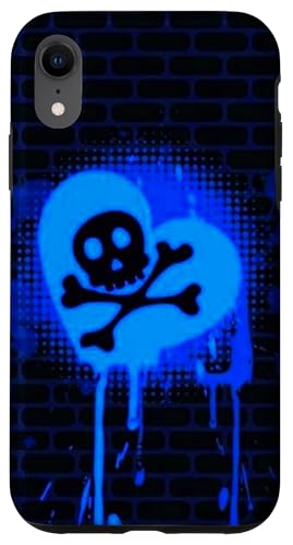 Bombe de Peinture Graffiti Bleu crâne cœur Emo Punk esthétique Coque pour iPhone XR