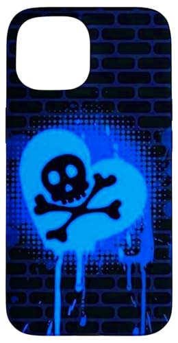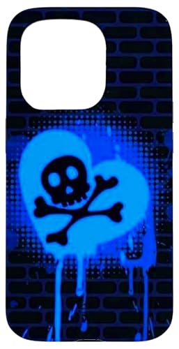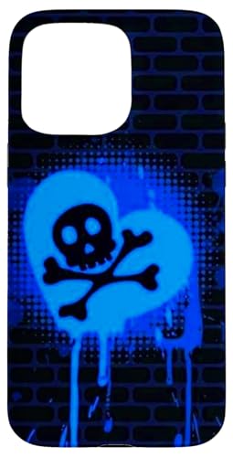 Bombe de Peinture Graffiti Bleu crâne cœur Emo Punk esthétique Coque pour iPhone 15 Pro