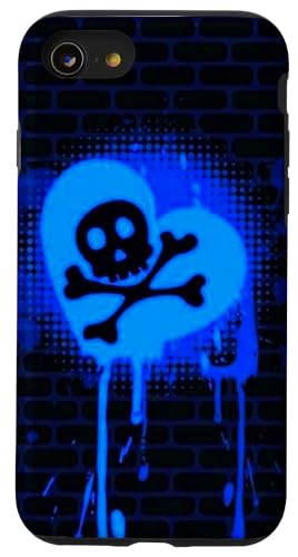 Bombe de Peinture Graffiti Bleu crâne cœur Emo Punk esthétique Coque pour iPhone SE (2020) / 7/8