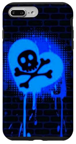 Bombe de Peinture Graffiti Bleu crâne cœur Emo Punk esthétique Coque pour iPhone 7 Plus/8 Plus