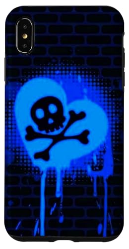 Bombe de Peinture Graffiti Bleu crâne cœur Emo Punk esthétique Coque pour iPhone XS Max