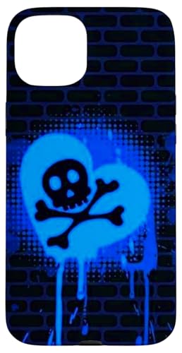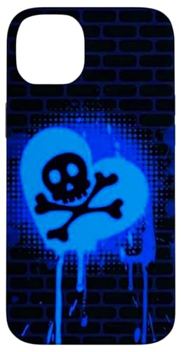 Bombe de Peinture Graffiti Bleu crâne cœur Emo Punk esthétique Coque pour iPhone 15 Plus
