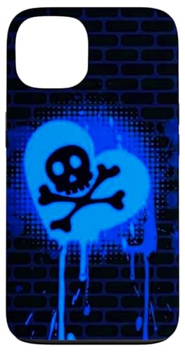 Bombe de Peinture Graffiti Bleu crâne cœur Emo Punk esthétique Coque pour iPhone 15