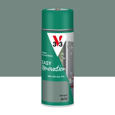 Bombe de peinture extérieure bois, fer, plastique gris garrigue satin V33 Easy Rénovation 400 ml