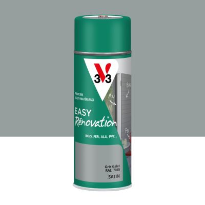 Bombe de peinture extérieure bois, fer, plastique gris galet RAL 7045 satin V33 Easy Rénovation 400 ml