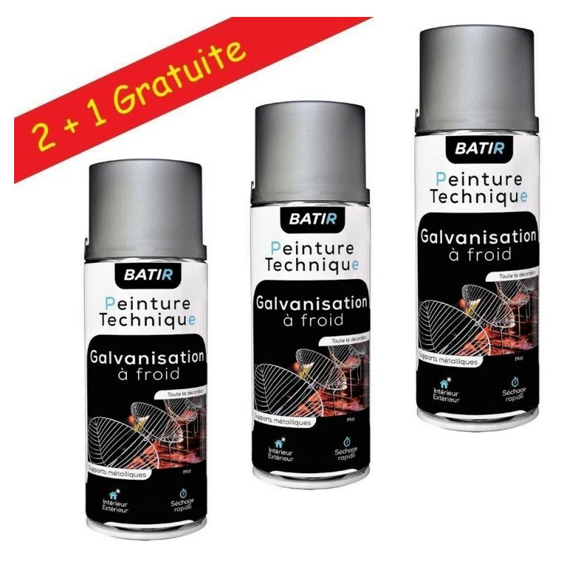 Madeinnature - Lot de bombes de peinture technique Galvanisation à froid Gris mat - Aérosol 400ml – Intérieur et Extérieur 1 m² par bombe - Lot de 3.