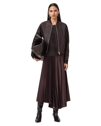 AllSaints Femme Orten Bomber Jacket Veste En Cuir, Rouge Sang De Bœuf, UK 12/US 8 EU