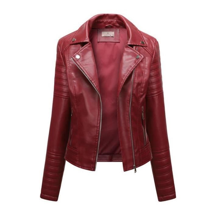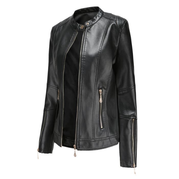 Veste Cuir uni Moto pour Femme Bomber Col Montant Similicuir Fit Grande VêTements