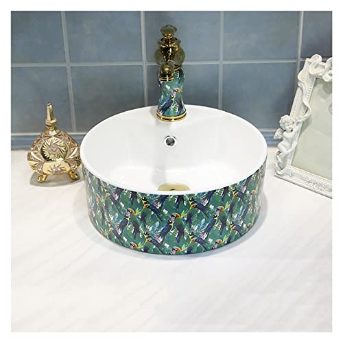 IROEJT Vasque à Poser Design, Luxueuse Vasque Artistique en Porcelaine avec Robinet et bonde clic-clac, lavabo décoratif à Poser pour Salle de Bain de Bar