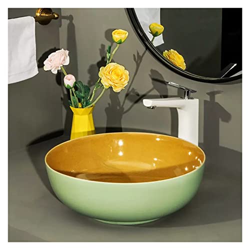 IROEJT Vasque de Salle de Bain Luxueuse, Vasque Artistique en Porcelaine Tendance avec Robinet Noir et bonde clic-clac, lavabo en céramique à Poser, Vert 1