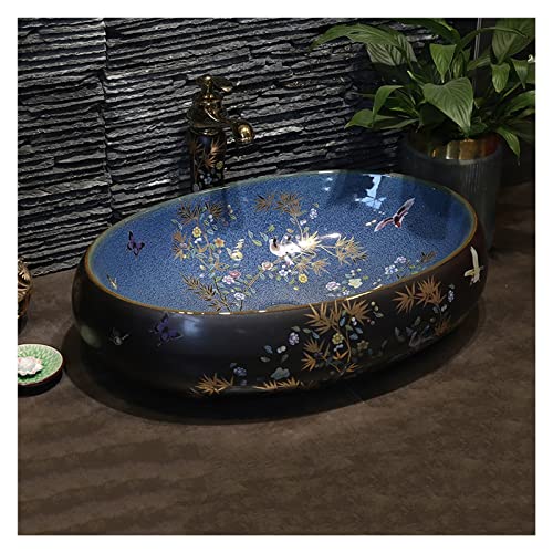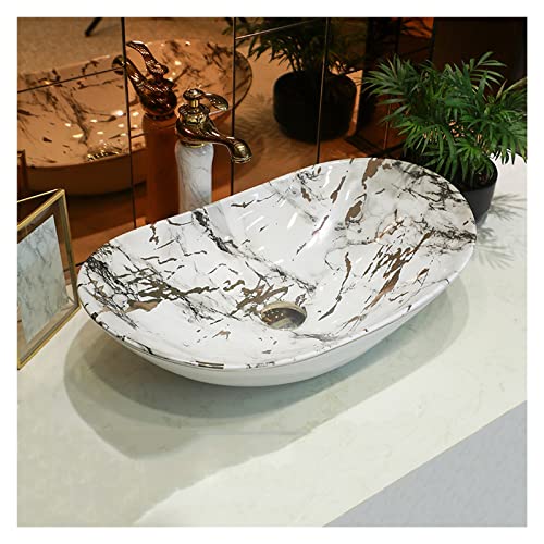 IROEJT Vasque Luxueuse, Vasque Artistique en Porcelaine avec Robinet et bonde clic-clac, lavabo Ovale à Poser pour Salle de Bain de Bar.