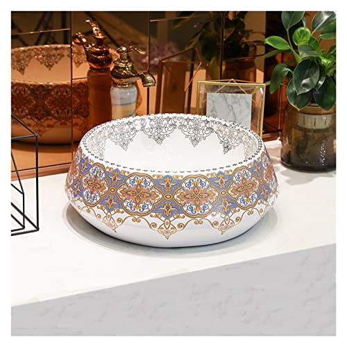 IROEJT Vasque Ronde à Poser, Luxueuse Vasque Artistique en Porcelaine avec Robinet et bonde clic-clac, Meuble-lavabo Classique à Poser.
