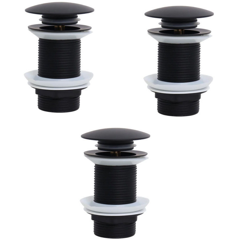 Bonde de Lavabo Sans Trop Plein, Bonde Clic Clac, Bonde Lavabo d'évier en Laiton, Joint Bonde Lavabo, Bonde Baignoire, Noir,3 pièces