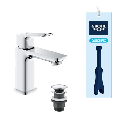 GROHE QUICKFIX Start Robinet de salle de bains lavabo, mousseur économie d'eau, sans tirette, bonde clic clac incluse, installation et nettoyage facile, taille S, chromé, 23551002 (Import Allemagne)