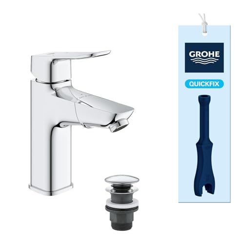 GROHE QUICKFIX - Swift 2023, mitigeur lavabo, sécurité enfant, bonde Clic-Clac, Taille M,Economie d'eau, outil de montage fourni, Chromé, 24327001