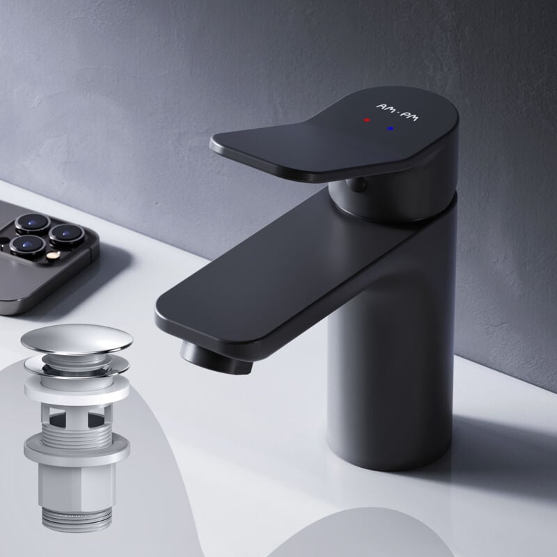 Am.pm - Mitiguer Lavabo avec bonde clic clac pour lavabo Robinet Salle Bain Noir Robinet de Lavabo pour Salle de Bain Mélangeur Lavabo en Laiton