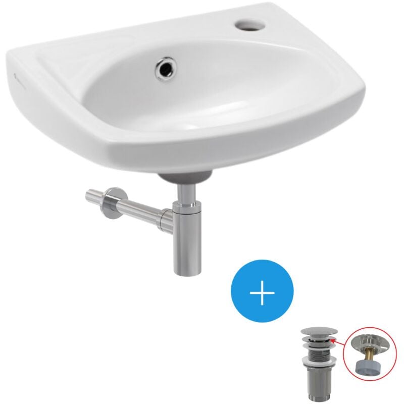 Siko - Ensemble lave-main suspendu avec trou pour robinetterie, trop plein, 35x28cm + Bonde clic-clac + Siphon de lavabo (EUR913-SET2)