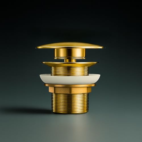 Xcel Home Bonde clic-clac dorée pour lavabo – Bouchon d'évier à fente – Laiton massif avec finition dorée polie – Ajustement universel G 3,6 cm BSP – Installation facile pour lavabos de salle de bain