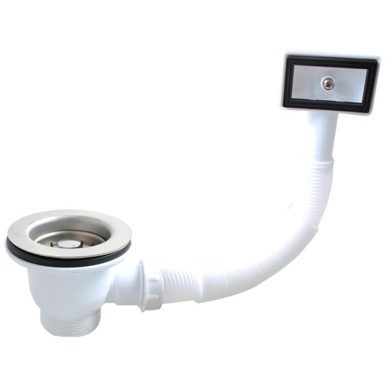Lira - Bonde automatique d'évier satin avec gain de place et trop plein rectangulaire et bouton poussoir chromé