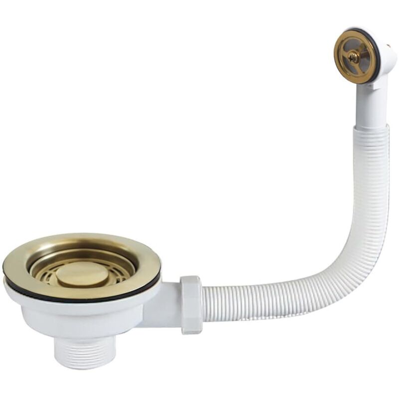 Kit de bonde d'évier de cuisine de 114 mm, passoire doré/gris foncé avec kit de trop-plein rond-U (doré)