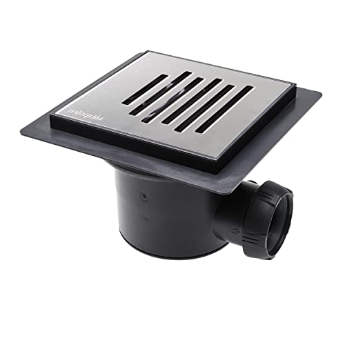 EFUTURETIME 20x20cm Caniveau de Douche Carré INOX, Siphon de Sol Douche Italienne à Carreler avec Raccord DN50/DN40 Bonde Douche Extra Plate Siphon à 360° avec Anti-Odeurs et Filtre à Cheveux