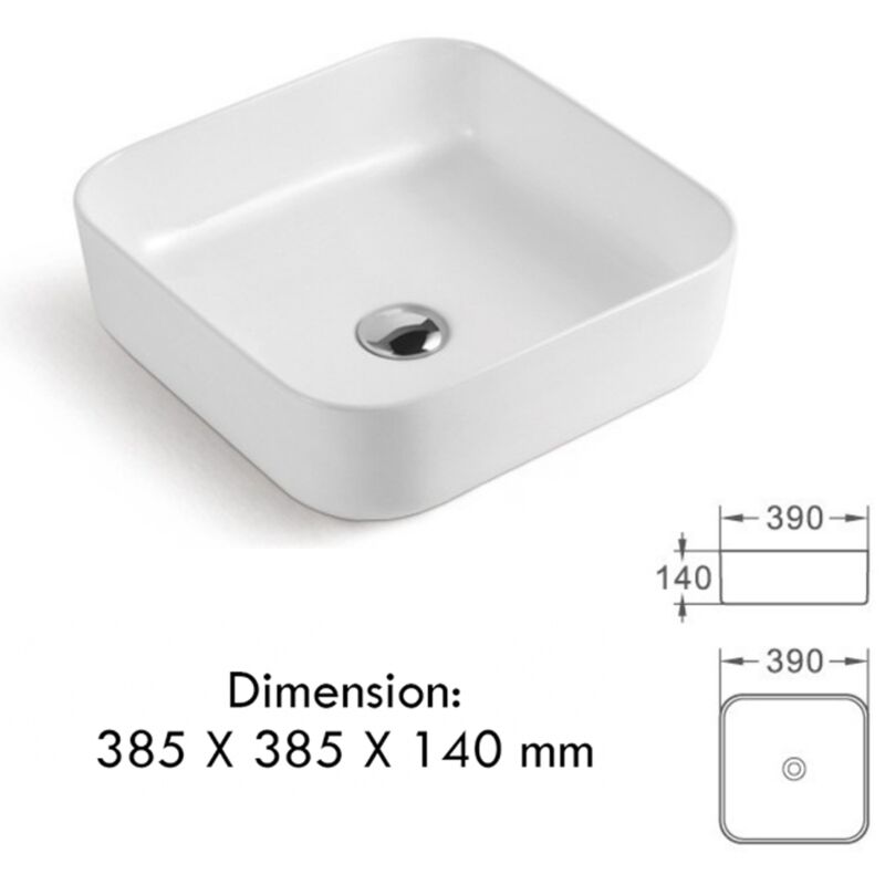 Vasque à poser en céramique lavabo perçage forme rectangle Blanc avec Bonde Siphon 385x385x140mm