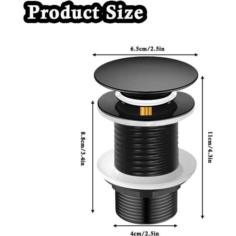 Ymyny - Bonde de Lavabo Noir Sans Trop Plein, Bonde de Lavabo Pop Up, Bonde de Vidage Sans Trop Plein avec Joint Bonde Lavabo pour Vasque a Poser